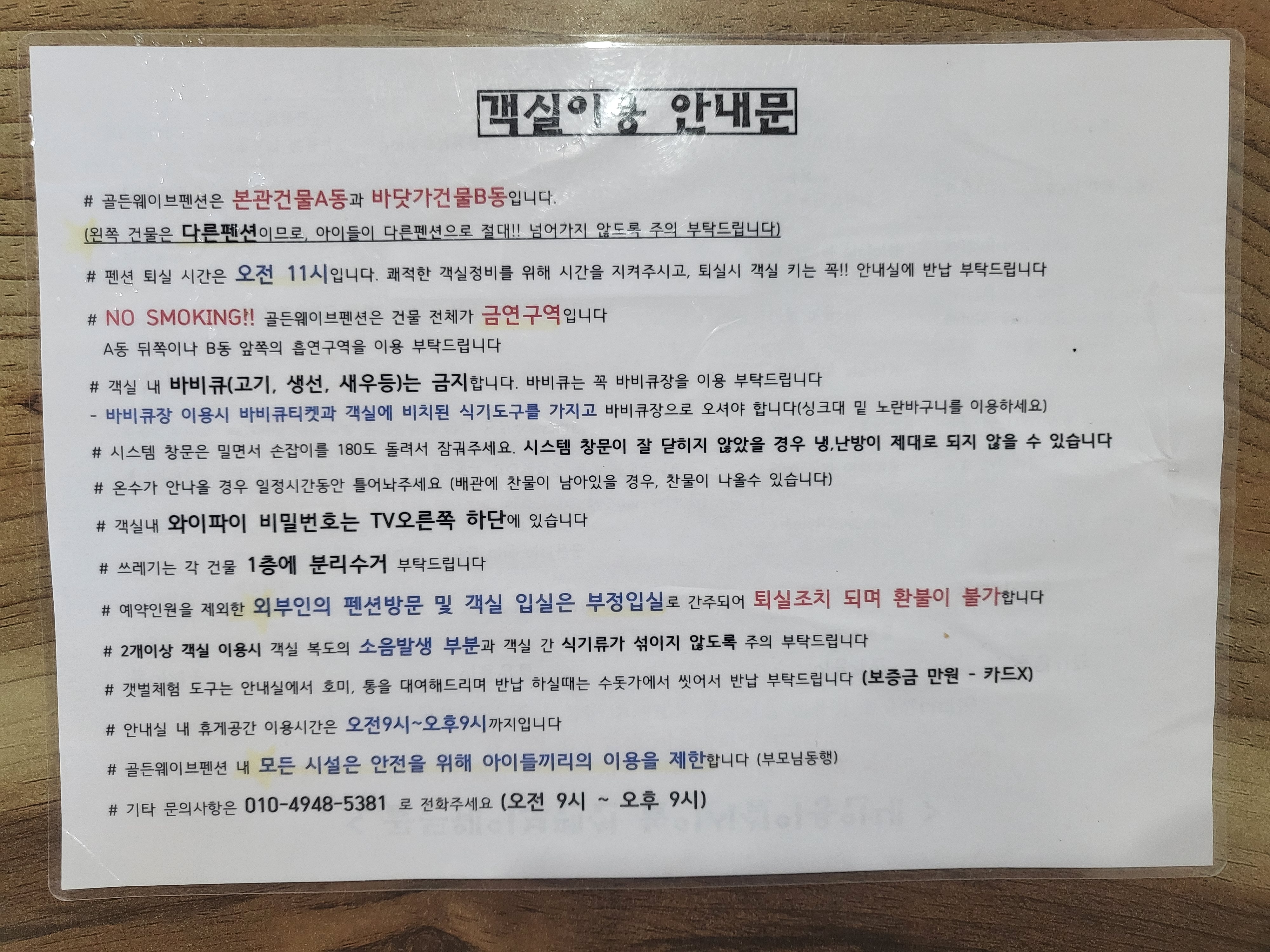 펜션 안내사항 한번 읽어주는 센스
